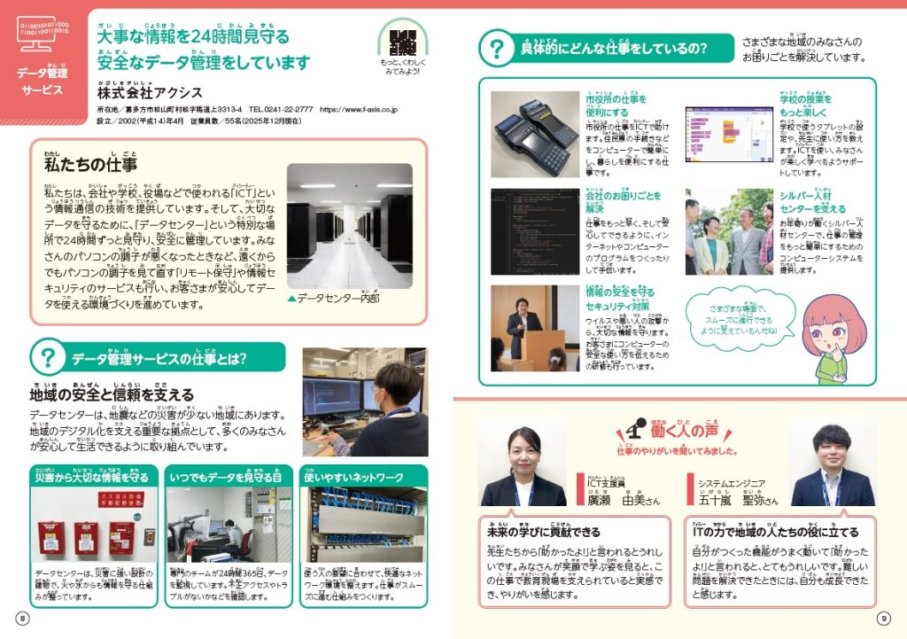 誌面では地域に根ざした企業の仕事や役割が紹介されており、子どもたちが「働くこと」をより身近に感じるとともに、子どもたち自身の将来や進路について考えるきっかけとなることが期待されています。